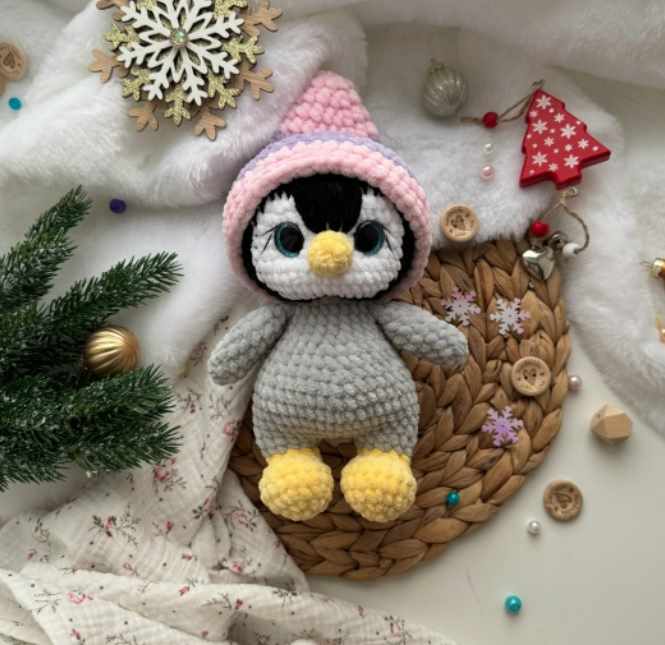 Игрушка вяжется одной деталью, пришиваем только клюв. Шапочка так же входит в МК.